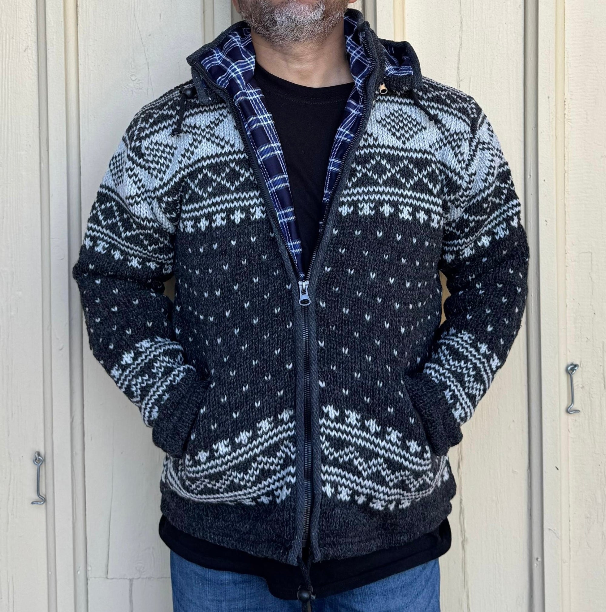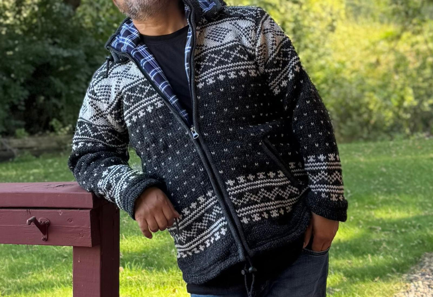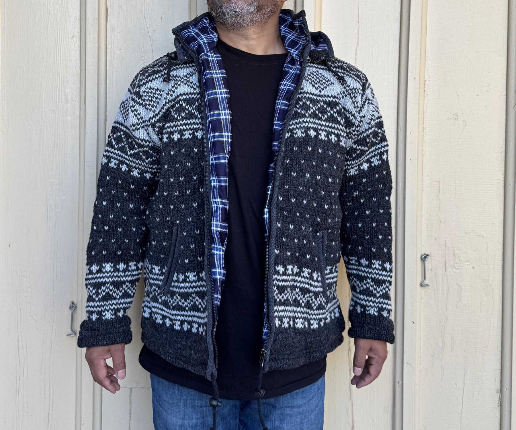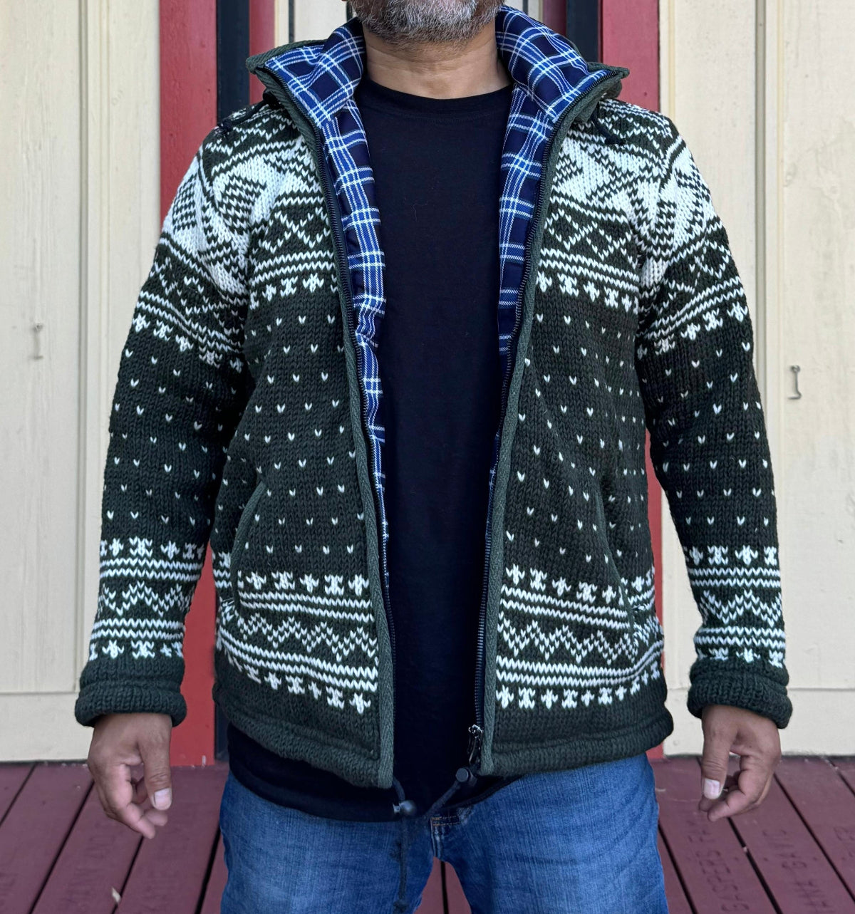 Beautifully handknitted in Himalayan regions of Nepal, this woolen sweater with flannel fleece lining is a perfect fit for your winter need. Its design and hand-crafted nature reflect the rich culture and traditions of this region.