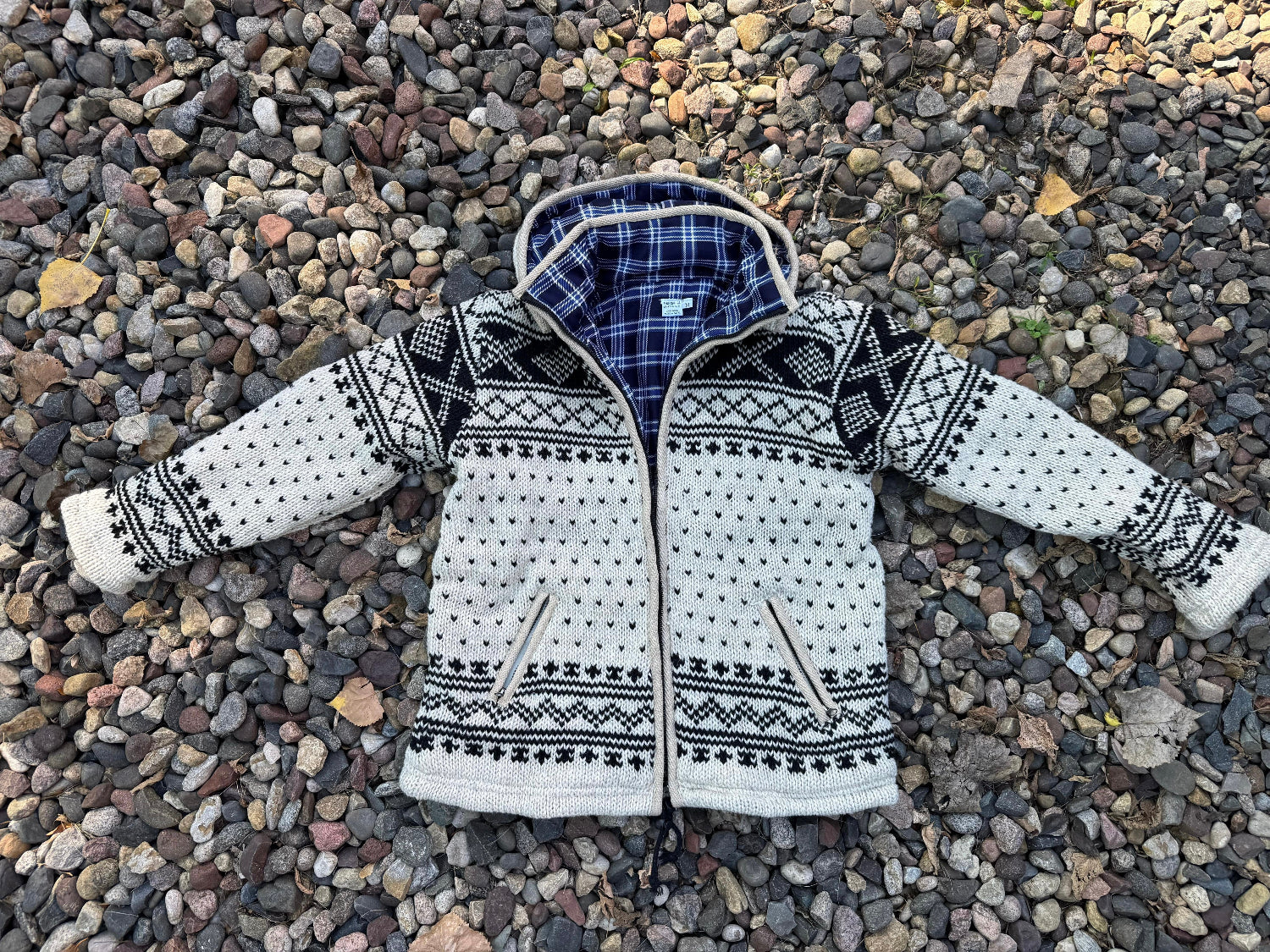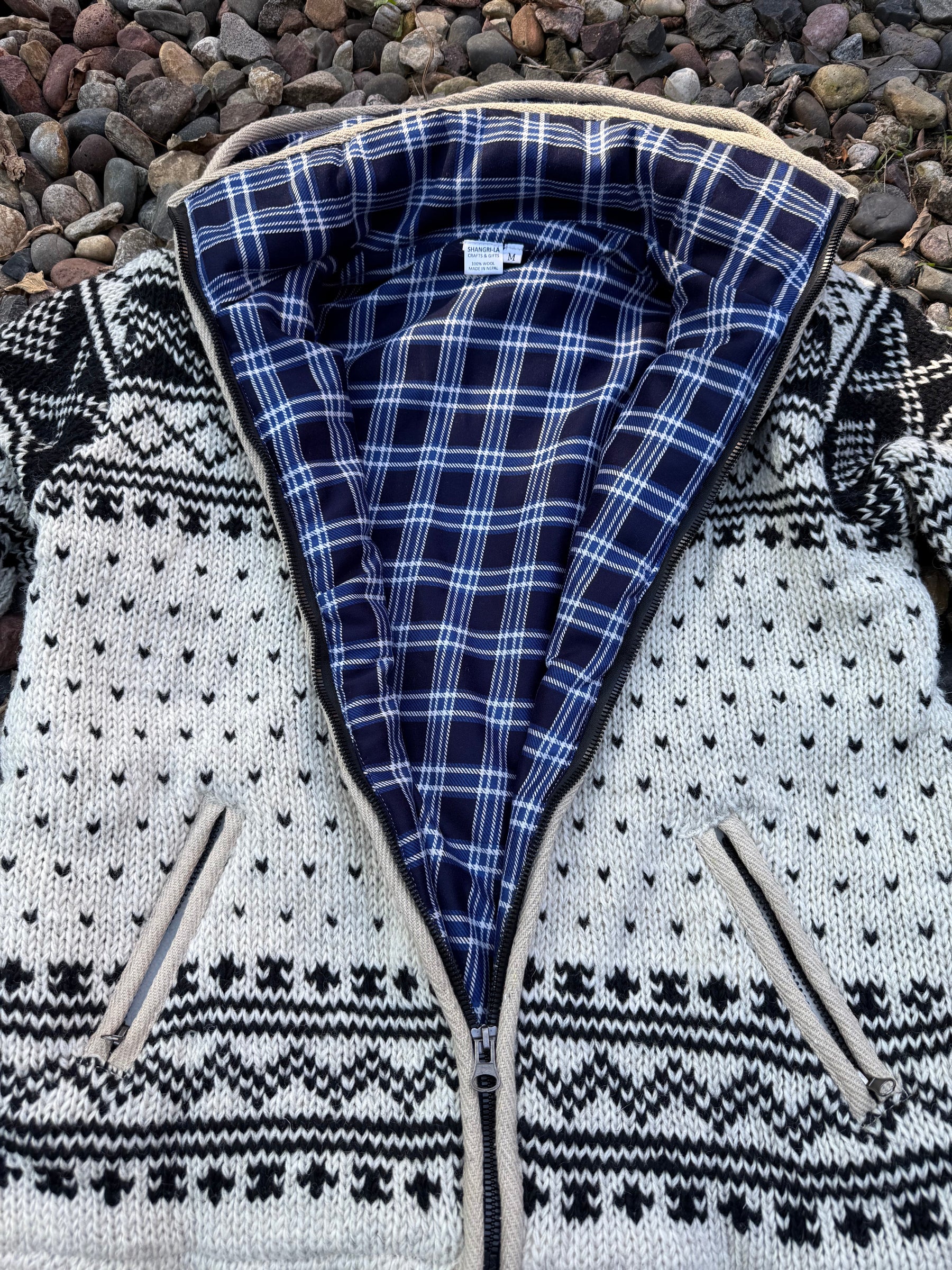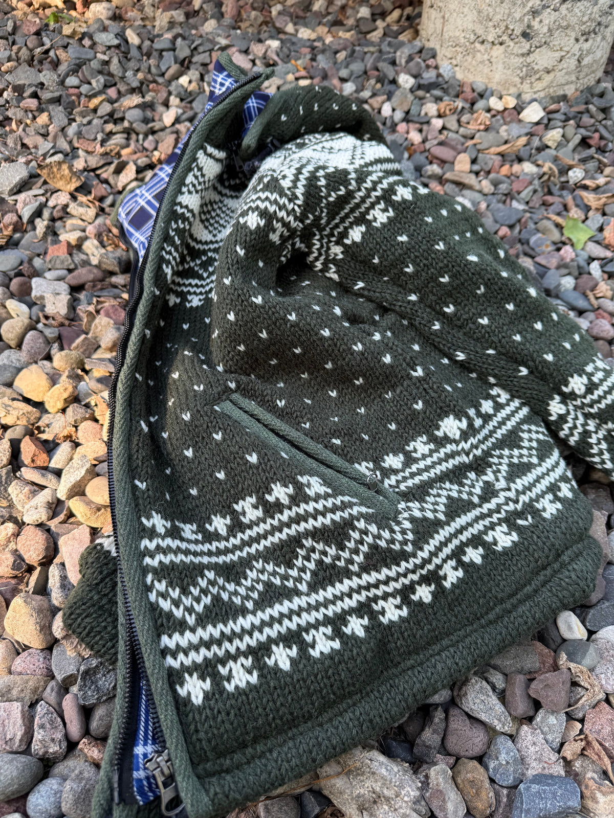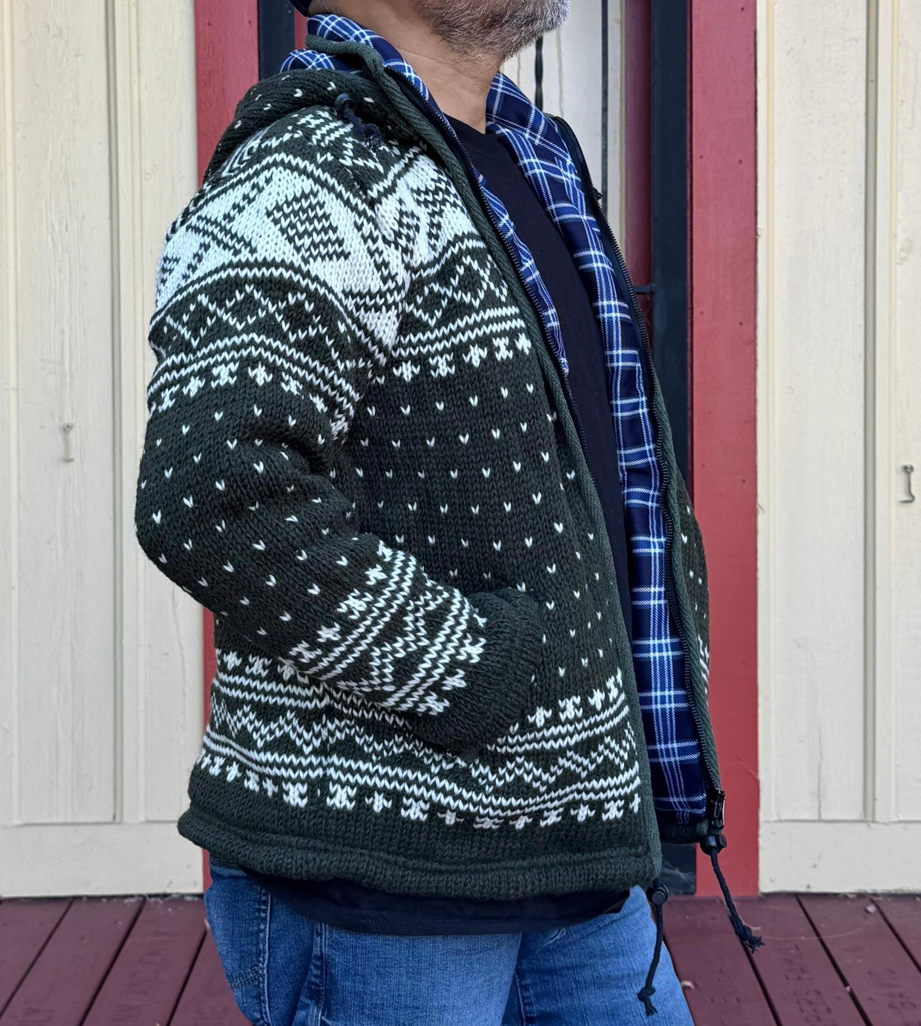 Beautifully handknitted in Himalayan regions of Nepal, this woolen sweater with flannel fleece lining is a perfect fit for your winter need. Its design and hand-crafted nature reflect the rich culture and traditions of this region.